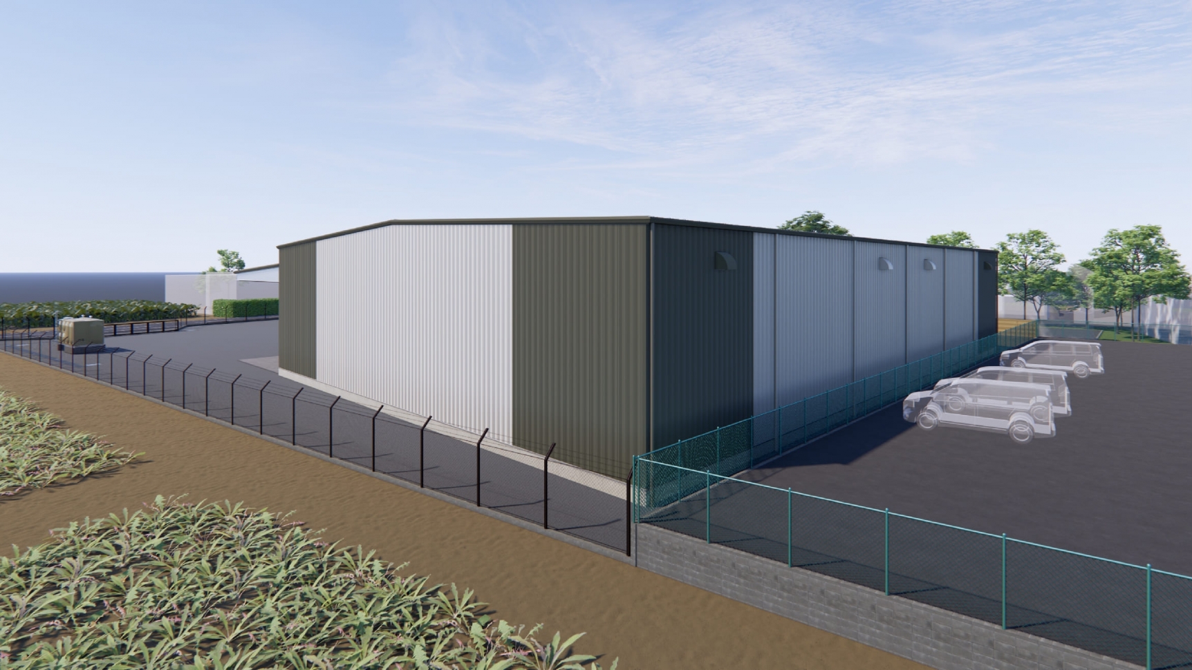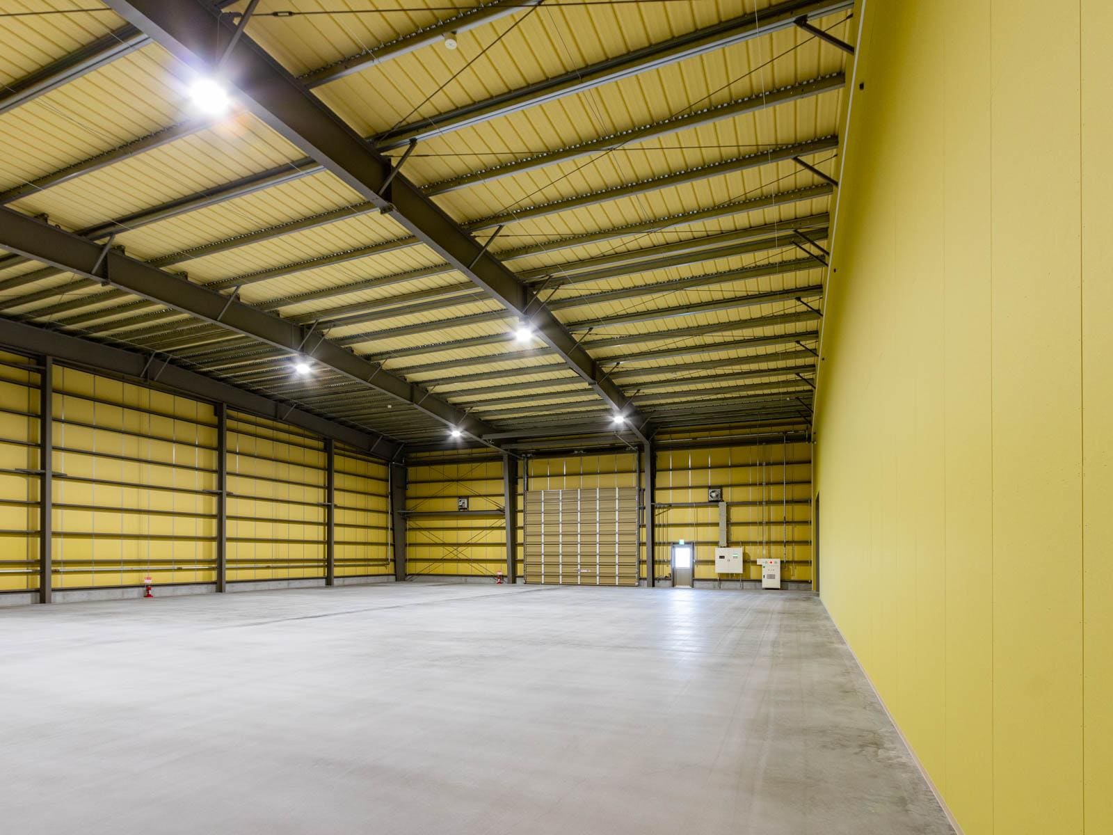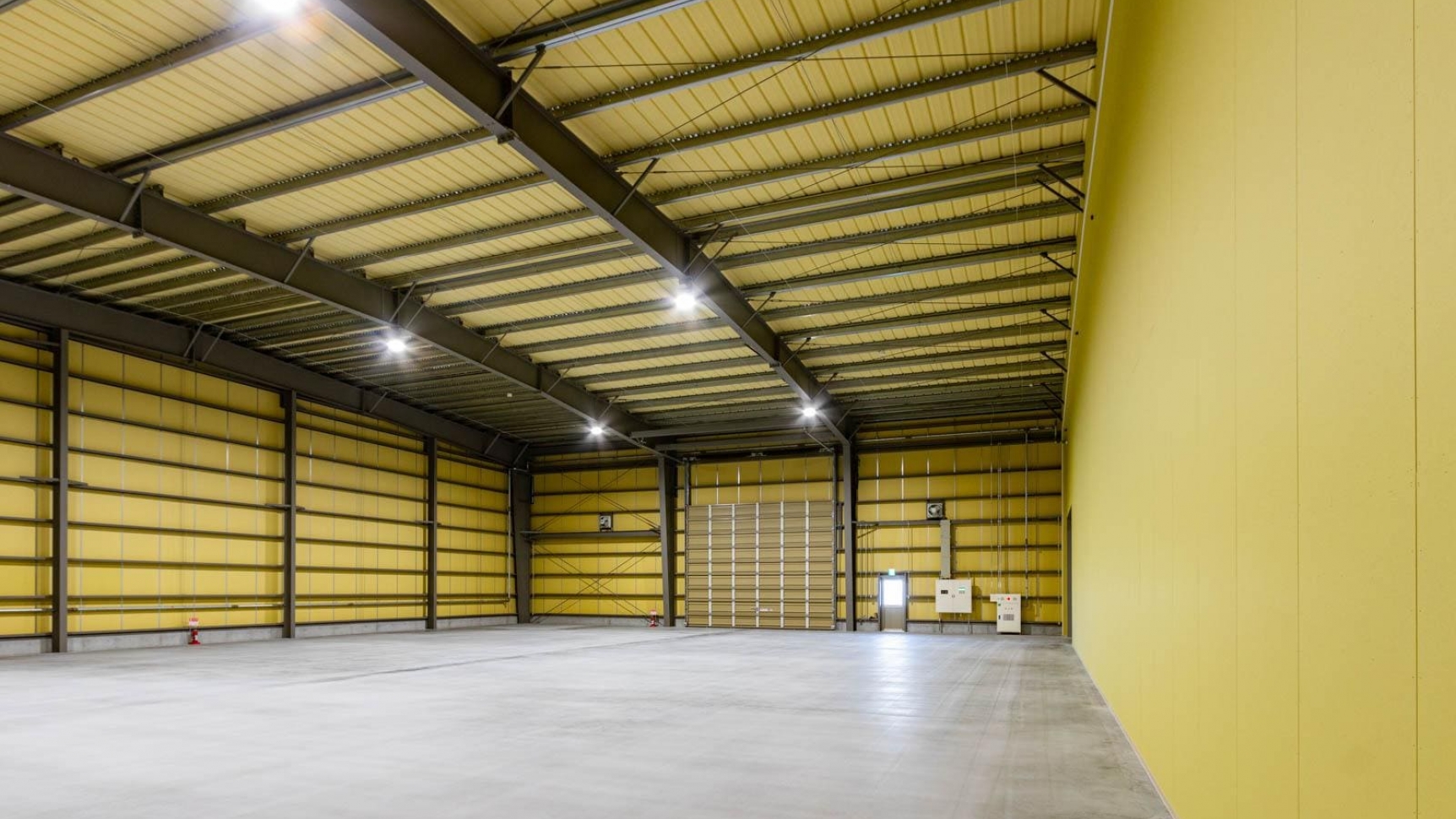 A rental warehouse of approximately 400 tsubo (1320 m²), with having a large projected canopy and two large rooms inside.